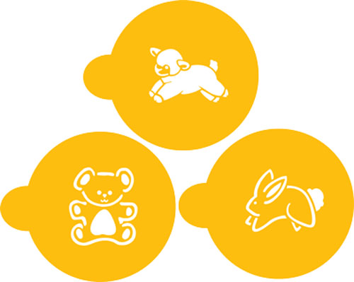 | Description | These patterns fit a 3" circle. They are made from a durable, 10 mil food-grade plastic. Perfect for Baby Shower mini cakes.
