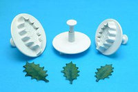 | Description | The veined holly leaf plunger cutter is made out of plastic. It can ideal be use for Christmas to decorate the Christmas cake. It s comes in three set of three. The measurement for the veined holly leaf is 43mm 50mm and 57mm . It s also easy to wash and clean |