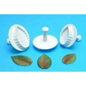 | Description | PME Veined Rose Leaf plunger Cutter Larger size set of 3. Made from white durable plastic and easy to use and clean. Use these cutters to make pretty Veined Rose leaf for all your cake needs. Sizes are: 45mm (1 3/4), 55mm (2 1/4in), and 50mm (2in). |