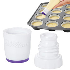 | Description | Fill baking cups and pan cavities easily with no drips or mess! Built-in valve controls batter flow for uniform filling, so you get great-looking cupcakes and cakes every time.