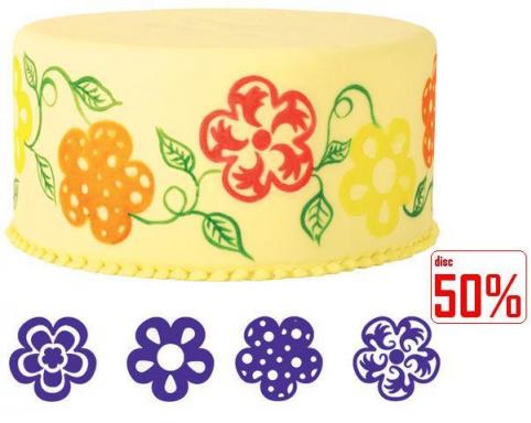 | Description | Put your personal stamp on cakes and treats with this Flower Cake Stamp Set. Use with Dab-N-Color. Edible colors (sold separately) to stamp an unforgettable finishing touch on Sugar Sheets. Edible decorating paper, fondant or gum paste designs.
