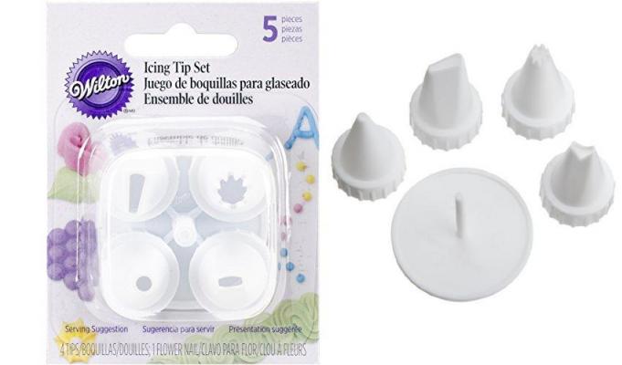 Set of 4 piping tips and 1 flower nail