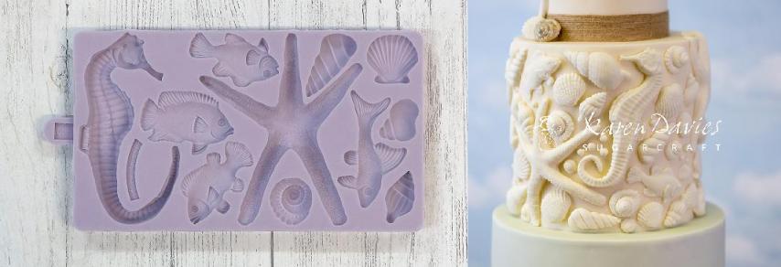 | Description | Create beautiful seaside accessories quickly and easily! Giving you 4 different fish, 5 different shells, a star fish and a sea horse! Perfect for creating nautical cakes, cupcakes and cookies! See also our Sugar Shells, Rustic Driftwood and Mermaid Scales Molds! All of our original design molds are made in our factory in the UK and independently tested in Germany to assure compliance to the highest food standards. Our molds can be used with Sugarpaste, Flower paste, Marzipan, Modelling paste, Chocolate, Candy, Boiled Sugar, Saltdough, Air Drying Clays, Cold Porcelain and Embossing Powder. |