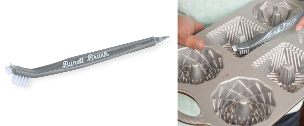 | Description | Material: BPA-free and Melamine Free Plastic 3-in-1 tool: includes angled brush, a flat scraper, and pointed pick for hard to reach spots on intricately detailed pans Use & Care: 1. If cleaning soft bits of cake residue from a pan, it is recommended to soak the pan for 5 minutes in hot, soapy dish water. 2. Using the Bundt Cleaning Tool, select the appropriate tip for your cleaning needs, and scrub or scrape gently. Rinse in hot soapy water. Do not soak your Bundt pan for more than 15 minutes, as it may damage the coating. 3. If cleaning hardened crisp cake residue and crumbs out of a pan, try using the Bundt Cleaning Tool on a dry pan to loosen and remove the bits prior to soaking in water. We find that hardened bits will often come out more easily when dry. 4. Rinse your Bundt Cleaning Tool in warm soapy water after use, and allow to dry before storing. Dishwasher use not recommended. |