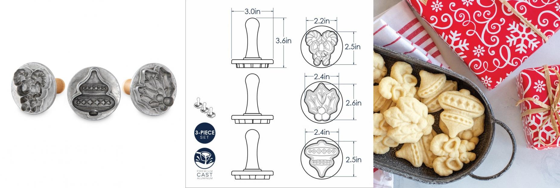 charm. Use & Care: 1. Chill stamps prior to use. Always use cold dough. If sticking occurs, dip stamp in flour or sugar, or brush with oil. 2. Hand wash only. Never submerge wooden handles in water. Wipe clean. 3. We suggest making cookie dough from scratch when using cookie stamps. Cookie stamp impressions will not be as defined if using prepackaged cookie mixes or refrigerated dough. |
