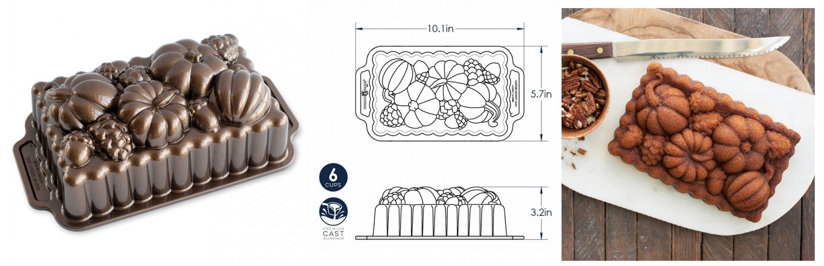 | Description | Great for pumpkin spice and other fall quick breads and cakes. This pan