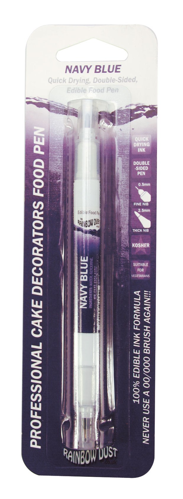 | Description | Rainbow Dust's food Pens are filled with edible ink. The Pens have a standard pen style 2.5mm nib which can be used for standard work and a fine 0.5mm nib for the fine detail such as adding facial features and intricate details. |