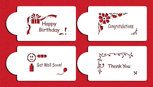 These stencils are cut out of a 10 mil, durable, food grade plastic. Each pattern fits within 1.75"H x 3.25"W.