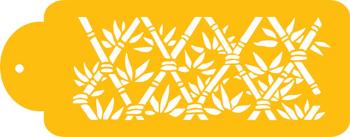 This bamboo stencil measures 3"H x 7.5"W and is made out of durable, 10mil food-grade plastic. It is a cake side.