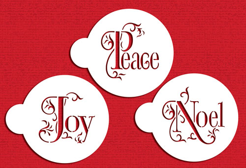 | Description | Perfect for Christmas! Our elegant Holiday lettering cookie set includes three different words- Joy - Noel - Peace. Each fits within 2.75" circle. Stencils are made of durable 10 mil food grade plastic for high-quality, professional use. Stencil can be used to decorate cakes with royal icing, colored powdered sugar, color dust, sparkling dust, airbrush, and color spray. |