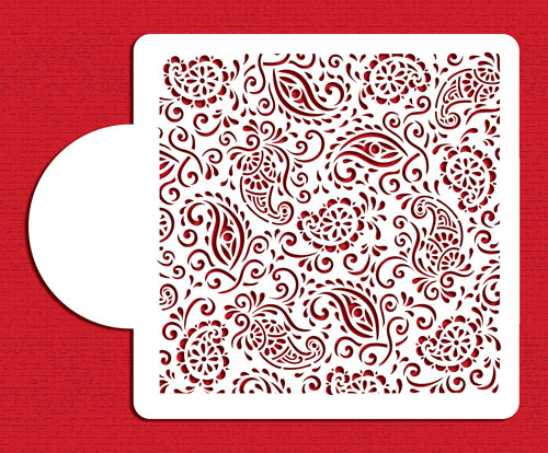 | Description | This henna miniprint pattern is so versatile. Use it for cookies or cakes from 2" - 6" round or as detail on the side of cakes. Design measures 6"H x 6" W and is cut on 10 mil food grade plastic. The stencil can be used in decorating cakes with colored royal icing, spray with spray color or airbrush, colored powder sugar, etc |