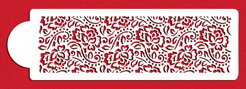 | Description | Inspired by original hand-drawn turn of the century artwork, this Chantilly lace pattern showcases roses and leaves perfect for a wedding cake. Measures 3.8" h x 13" w and is precision laser-cut from food grade plastic for repeated use. Use colored royal icing, sugar powder, color dust, spray color, airbrush color to decorate your cake, cupcakes, cookies, etc covered fondant, royal icing, and butter cream icing. |