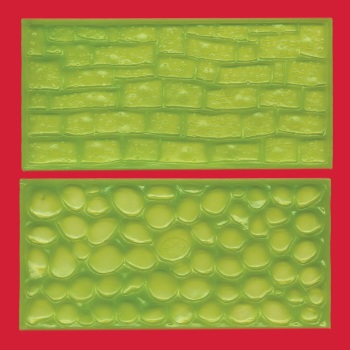 Mats made from silicone to produce a cobblestone and stone wall embossed.