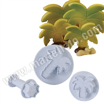 Plunger cutter in shape of palm tree and sun with sizes: