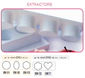 | Description | Once the mousse is set and firm inside the Tray Uniportion, place the Extractor in the bottom of the Tray and push the Tray down. So the mousse inside will come out clean, firm and stay in shape. The shape of the Extractor itself is many, you have to choose the rite Extractor for your Tray. See in the picture the choices of the shape. |