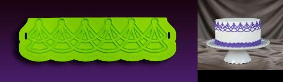 | Description | This Overlapping Drop Strings Silicone Onlay is the perfect tool to create raised, 3D stringwork designs for cake decorating or any arts & crafts project. If you like working with stencils you will love this Overlapping Drop Strings Onlay which is made with a flexible, food grade silicone instead of rigid laser-cut plastic. Size is 6.25 x 1.5 inch or 15.63 x 3.75 cm |