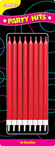 PARTY CANDLES - RED W/ HOLDERS 13 CM LONG