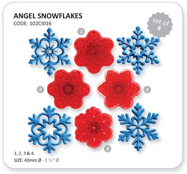 | Description | Cut and emboss the motif of snowflakes. Divide by 4 different designs of snowflakes and give a detailed emboss. Perfect for cutting fondant, marzipan, gum paste, and chocolate modeling. |