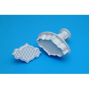 | Description | These multifunctional cutters can be used to create wonderful plain or textured plaques on a variety of media like gum paste or fondant in various sizes. Use as cut out pieces or emboss directly on the cake. Interchangeable embossing heads. |