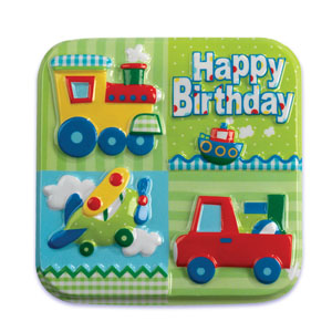 Made of plastic. Washable and re-use. Put on top of cakes or mini cakes would be perfect for a birthday boy celebration.