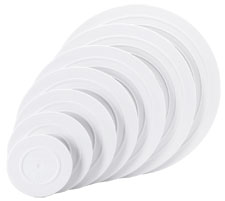 | Description | A fresh, clean shape which puts all the focus on your beautiful cake. Built for unmatched stability, with our patented Circle of Strength™ design. Plate feet fit securely on Wilton pillars, available in many styles. The size is 12 inch or 30 cm wide |