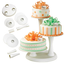 | Description | A distinctive display, featuring locking pillars in a secure base, providing dramatic tier heights and stable support. Its unique design and clean construction complements any setting—great for cakes, mini cakes, appetizers and more.
