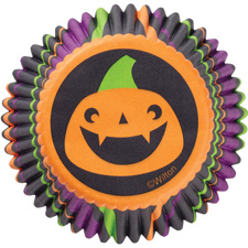 | Description | This pumpkin has got a bite! Halloween baking cups feature vibrant orange, green and violet stripes on a bold black background. Use with Standard Muffin Pan Microwave-safe, colorful paper Standard size, 2 in. dia. or 5 cm diameter Pk./75. |
