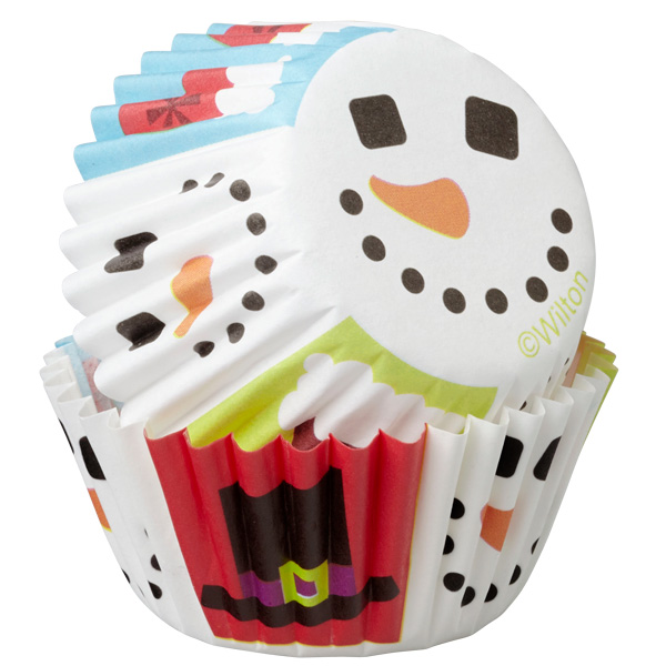 Fill these snowman themed mini baking cups with bite sized cupcakes, nuts or candy