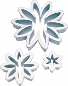 | Description | With Cut-Outs, it’s easy to make fun 3-D shapes of your fondant cakes and cupcakes. Just roll out fondant, press down with cut-out and lift away. Remove shapes with a small spatula. Shapes range from 5/8 in. to 2 1/4 in. Fast, fun way to brighten any fondant cake! Durable plastic. 1. Layered decorations! Stack cut-out fondant pieces in different sizes and colors. 2. Fondant fill-ins! Use a smaller cut-out to remove the center of your fondant decoration. Fill in with a different color! 3. Cake insets! Cut out shapes from your fondant-covered cake, then replace the pieces with your favorite colors. |