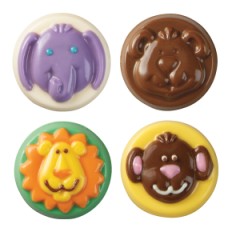 | Description | Turn store-bought cookies into candy-coated treats! With Cookie Candy Molds and easy-melting chocolate, it's a breeze to add a great tasting and colorful chocolate design to your favorite cookies. Just brush colored chocolate details in the mold, let set, then add more melted chocolate and position your cookie in the mold. Great for sandwich cream cookies or any round cookie 2 in. diameter or less. 4 designs, 8 cavities. |