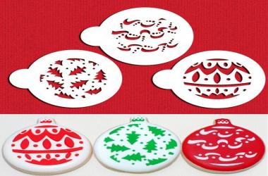 Each of the three cookie Christmas stencils fit within a 7.62 cm circle. It is made out of a durable, 10mil, food-grade plastic.