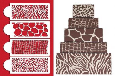 This animal skin cake stencil set includes:
