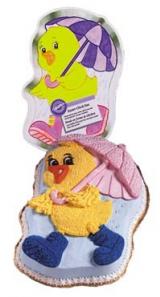 This fine-feathered friend loves to peep in for Easter, baby showers and other sprintime celebrations. One-mix pan is approximately 13 x 8 1/2 x 2 in. deep. Aluminum.