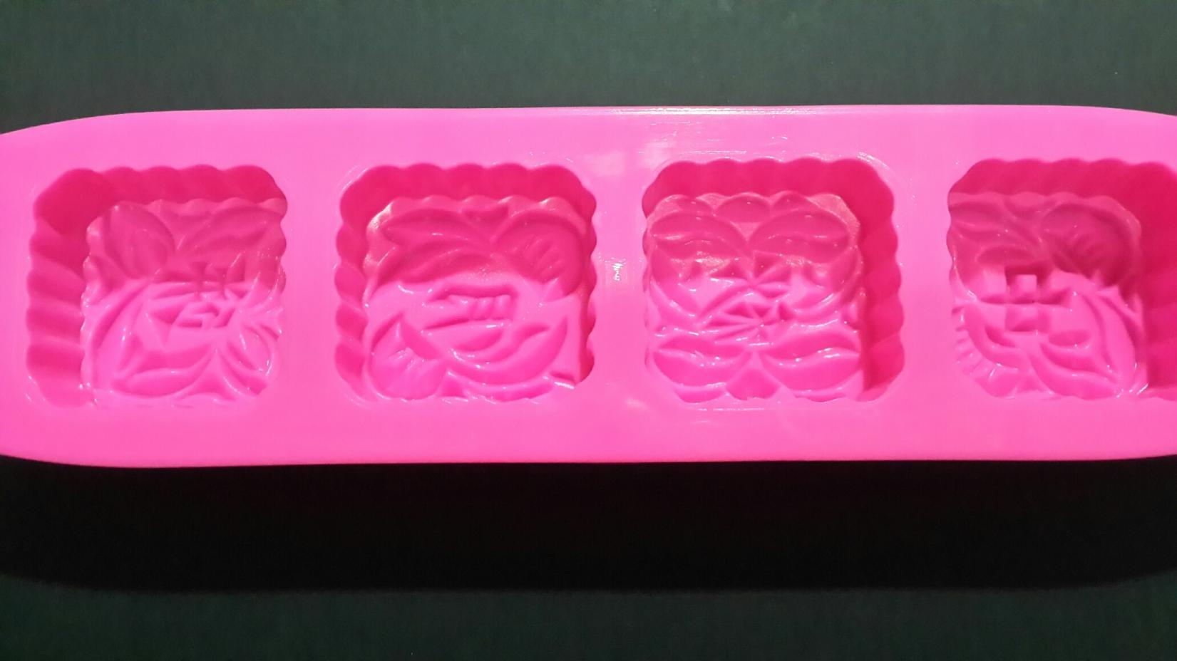 Made of plastic. For making small square mooncakes. 1 mold contain 4 holes