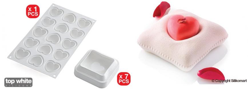 pillow-shaped molds and one to make 15 heart-shaped mini creations: the
