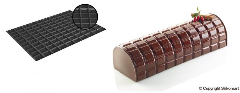 extended textures which can be used with bigger log shaped moulds. Kit Tortaflex Bûche Size: 250 x 90 h 70 mm Volume: 1300 ml + Tablette mat 280 x 185 h 6 mm |