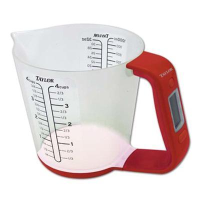 Digitally weighs food or liquids: Auto zero, Add & weigh, Auto shut off