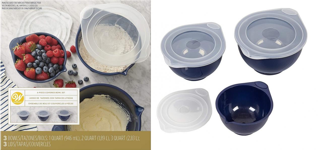 | Description | Every kitchen needs a great set of bowls to get the job done. Why not get something that not only works well but looks great, too? This stylish set comes in beautiful navy blue, so it really stands out from the rest. Each bowl has a silicone base so it stays in place while you mix and stir, plus they have measurements inside so you can follow your recipes without using additional tools. The spout makes it easy to pour, and when you’re done just place in the dishwasher for easy cleanup. Includes one 1 quart, 2 quart and 3-quart bowl and 3 lids. It makes a great starter or start-over set, perfect for gifting. Specifications: