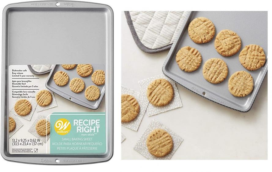 STICK: This Wilton cookie sheet is made of steel, the non-stick coating