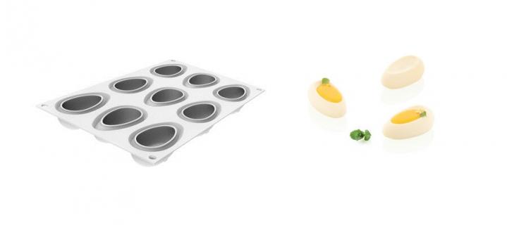 | Description | Judi40 will give softness and flavour to your mini desserts window. Judi40, composed of 9 cavities of 40 ml/1.35 oz each, is ideal for elegant mousses and semifreddos mini desserts. By combining the various mini desserts together, a flower-shaped cake can be created. Each mignon will represent a petal |