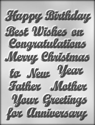 Happy 2¾" x 1" x ¼" ; Birthday 3?" x 1" x ¼" ; Best 1?" x ¾" x ¼" ; Wishes 2?" x ¾" x ¼"