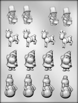Pieces range from the Reindeer 1¼" x 1¾" x ?" to Snowman 1" x 2" x ?"